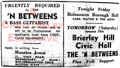 My undying gratitude, as always, to Chris Selby for some spectacular finds in the murky archives of Walsall. Fortunately for us, when Wolverhampton Library reopened their archives, Chris was there with his thermos and pack-up. Much borrowed from Chris Charlesworth, Noddy Holder and the excellent 2002 online book by Keith Farley. 'N Between Times: an Oral History of the Wolverhampton Group Scene of the 1960s. It's certainly worth a read.