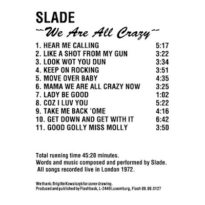 Another unfortunate event is Jim Lea's violin. He delivers a great rendition of Django Reinhardt's Lady Be Good which the group then follow up with Coz I Luv You which sounds empty until the Dave Hill & Don Powell join in. The reason becomes apparent when the song gets to the middle eight and the violin solo is not to be heard. As the vocal comes back in so does the violin but it's too late, the song is all but over. What is difficult to ascertain is whether its an instrument problem or a mixing desk problem. There doesn't appear to be the usual interference associated with a loose or faulty cable and I'm sure Jim Lea would have noticed, had his violin not been making music?