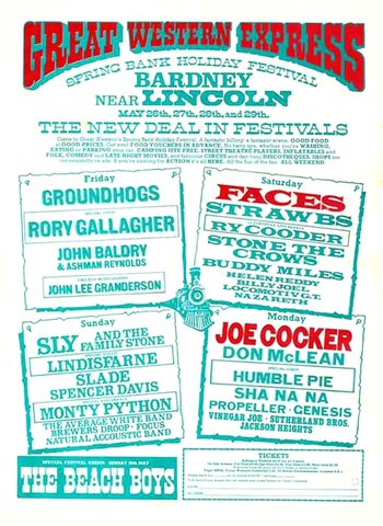 "....we got a big break. We were invited to play the Lincoln Festival, which was being put on in a vast field in Lincolnshire by the actor Stanley Baker. I don't know why he was involved, except that he was a big music fan. It was a three-day event and the first big festival since the Isle Of Wight. The other acts were all much hipper than us, not your usual pop-singles bands. There was Joe Cocker, The Beach Boys, Rod Stewart and The Faces, Status Quo and Lindisfarne. Apparently, we were only asked to be on the bill because Stanley Baker was a Slade fan.
