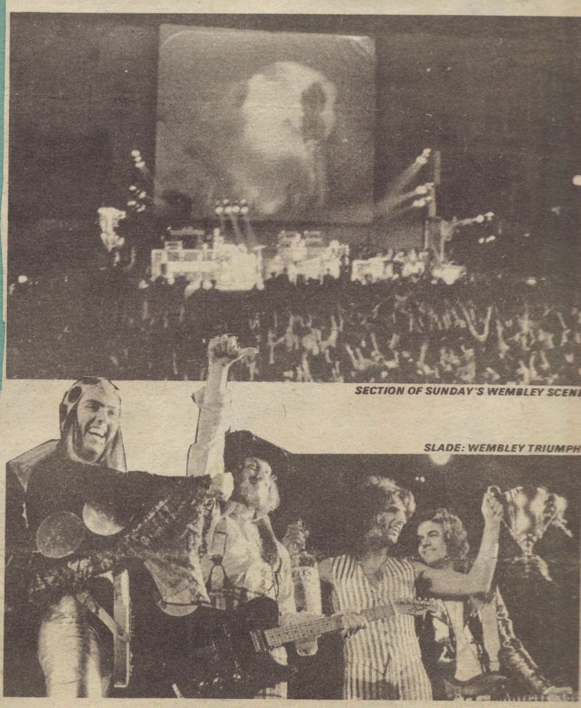 As they did every year, NME put on a concert at Wembley with Slade topping the bill this year. The demand was so much that a second concert was held in the afternoon. Slade played that day to 20,000 fans.